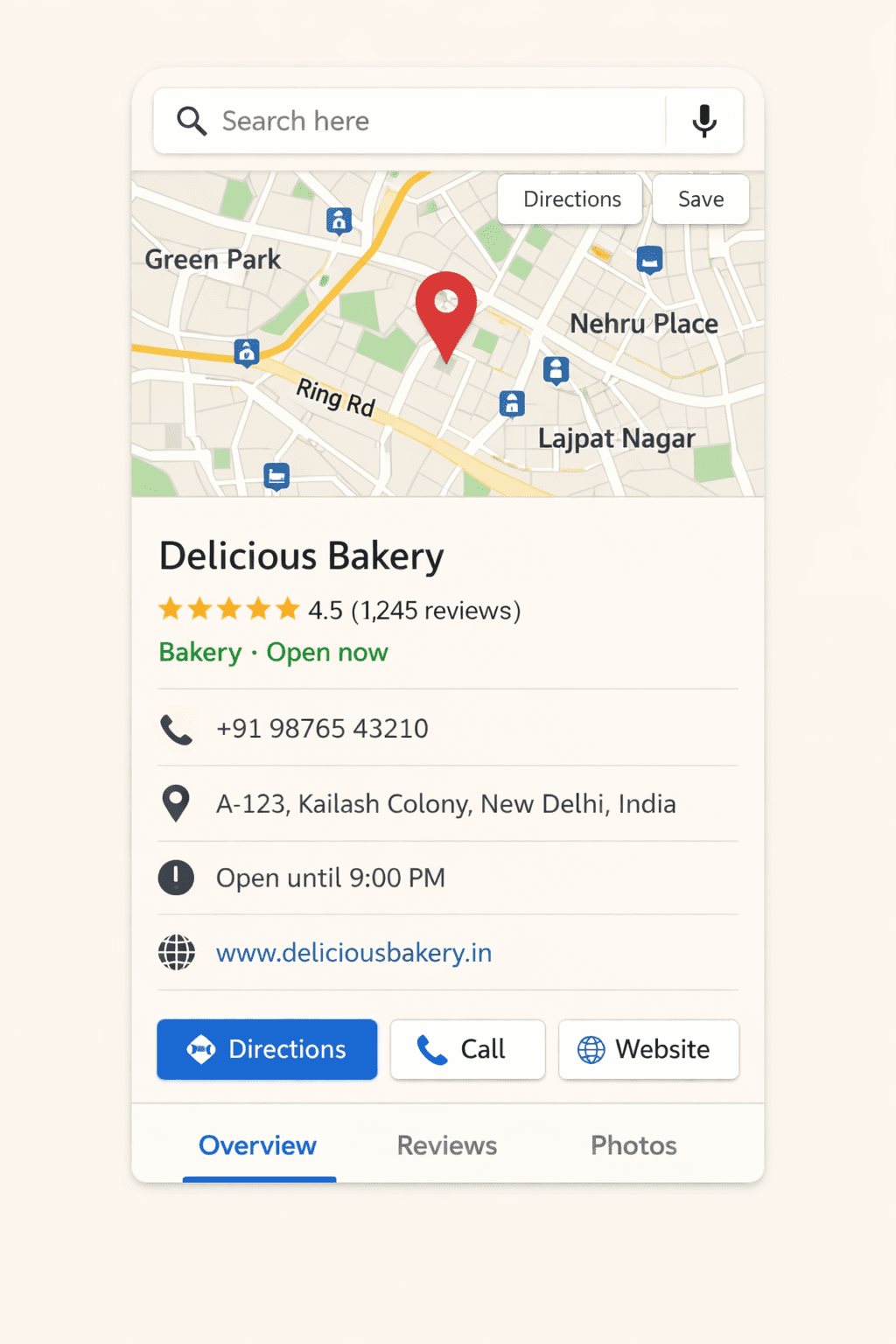Google Map Listing, also known as Google Business Profile, allows your business to show up in local search results and on Google Maps. It helps customers find your business, check your details, read reviews, and contact you easily.