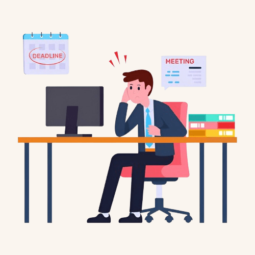 Confused and frustrated, the businessman wonders why his website isn’t bringing customers. Low traffic, poor ranking, and missed opportunities keep him stressed.